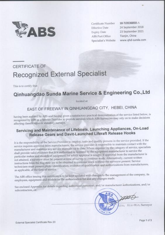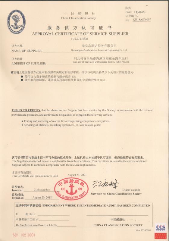 秦皇島順達船務有限公司位于美麗的海濱城市、中國北方著名的能源輸出大港--秦皇島。公司從事于船舶修理、物料供應、水下檢測、船體測厚、消防救生設(shè)備及救生艇檢驗、電氣自動化修理等服務。 公司自1997年成立至今,先后為國內(nèi)外船東修理、檢驗各類船舶萬余艘,積累了豐富的施工經(jīng)驗。公司現(xiàn)有場地100余畝,員工30余人,以及工程用車若干臺。我們公司一直本著嚴以律己、真誠待人、精益求精、信譽至上的經(jīng)營理念,以優(yōu)質(zhì)的服務、專業(yè)的施工、合理的收費,得到了國內(nèi)外船東的廣泛認可,贏得了良好的口碑和信譽。 公司已取得了中國船級社(CCS)、美國船級社(ABS)、日本船級社(NK)、德國船級社(DNV GL)等各個船級社的消防救生和救生艇檢驗資質(zhì), ...